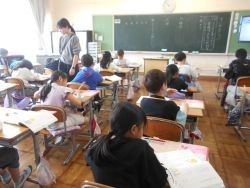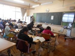 5校時、3年生は1組も2組も国語です。物語文、「すいせんのラッパ」を読んでいます。1組の課題は「すいせん、あり、グローブみたいなカエルの気持ちが分かるようにするためには、どうしたらいいのかな?」すいせんの気持ちが分かる部分に赤線を引いて、グループの仲間と共有しました。先生からは「自分の考えを大切にしてください」と助言がありました。2組の課題は「様子を思い浮かべて音読するために、大切な事を整理しよう」です。範読を聴いてから、自分で気付いたことや考えたことを書きました。自分でしっかりと考えて書いている姿がとてもよかったです。音読に生かせるよう、仲間の考えも参考にしてほしいです。