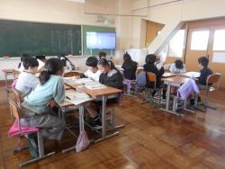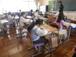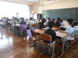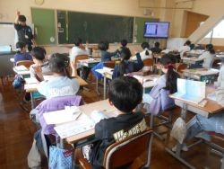 3校時、4年生は国語です。題材は、「こわれた千の楽器」という物語です。2組の課題は、「第2~3場面の楽器の気持ちを想像し、どうやって音読するか考えよう」まず、初めに新出漢字の練習です。指を使ってそら書き、続いて書く練習です。書くときにスッと集中して取り組める切り替えがよかったです。1組の課題は、「想像したことを音読で表現し、たがいに聞き合おう」皆、笑顔で仲間の音読を聴き、感想を伝えます。全体の発表では、「役になり切っていた。とても聴きやすい。」「感情が入っていて、たくさん練習したのだと感じた」など、様々な感想を伝えあいました。