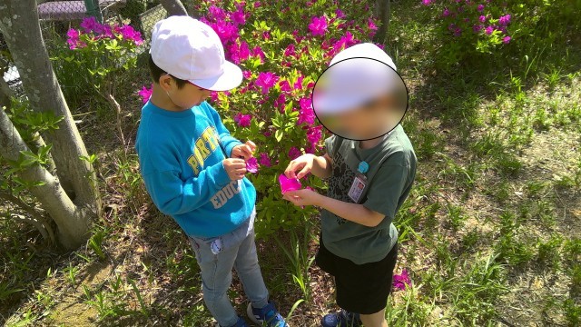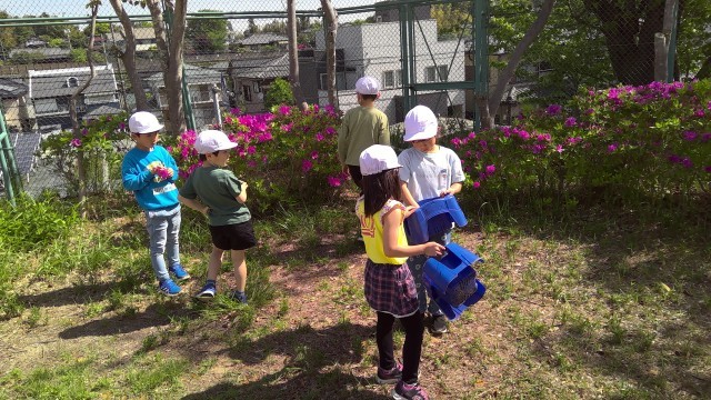 また、校庭に出て春探しをしました。きれいなお花を見つけたり、ダンゴムシを捕まえたりしました。