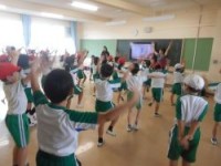 2校時、2年生は学年体育です。少し雨が降っていたので、初めに集会室で...