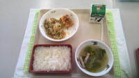 本日のメニューは、いかの香味ソースがけ、チャプチェ、レタススープです。