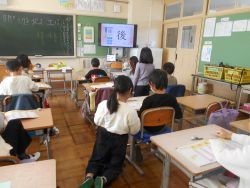 1校時、5年1組は外国語です。本時の課題は「行きたい施設までの道のりを説明しよう」まず、道案内で使う語句や文を復習しました。中には、少し難しい表現も入っていました。ALTと担任の先生がやり方を見せた...