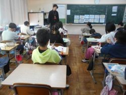 5校時、4年2組は国語です。本時は「くらしの中の和と洋」まず、漢字の練習を行いました。次に、「和と洋ってなんだろう?」と先生から質問があり、身の回りの和と洋を探します。「たたみ」「おばあちゃんの家の...