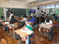4校時、3年2組はローマ字の練習です。以前に学んだものを、どれくらい覚えたかワークシートで確認する活動です。教科書は見ても見なくてもよい、自分で丸付けをしても先生が丸付けをしてもよいので、自分で考え...