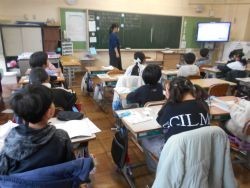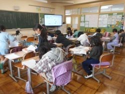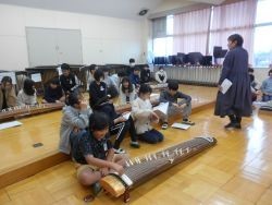 4校時、5年2組は音楽です。課題は「日本の音楽の特徴を感じ取ったり、よさを味わったりしよう」尺八と箏の演奏の鑑賞です。気付いたこと、感じたことを伝え合います。始めに聴いた曲は「お正月の音楽」、次に聴...