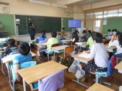 3校時、5年1組は算数です。課題は、「10倍、100倍、1000倍にした数はどんな数になるだろうか?」意欲的に、発表に挑戦していました。先生の問いに対する反応もよいです。仲間の発表などで聴いたことを、...