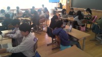 1組は国語の授業でした。物語文を読んで、登場人物の気持ちを読み取り、話し合っていました。2組は社会科でした。取手市のごみの収集についてタブレットを使って調べていました。