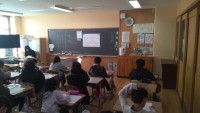 1組は算数の授業でした。三角形の合同条件についての授業でした。2組は国語の授業でした。2つの新聞記事を比較して、相違点などをグループで話し合っていました。