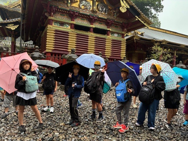 【6年生】修学旅行 公開日 2025/10/01 更新日 2025/10/01 6年生 ほぼ時間通りに日光に到着しました。最初は日光東照宮の見学です。あいにくの雨ですが、子どもたちはとても元気という報告がありました。この後は昼食とお土産タイムになります。