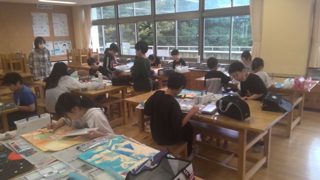 【5年生】2・3時間目の様子 公開日 2025/10/01 更新日 2025/10/01 5年生 1組は音楽の時間でした。パートに分かれて歌を歌う練習をしていました。2組は図画工作科の時間でした。「あったらいい、どんな町」というテーマで水彩画を進めていました。