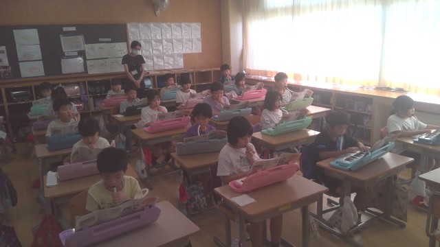 2時間目は音楽でした。「山のポルカ」を鍵盤ハーモニカで演奏していました。一生懸命活動していました。