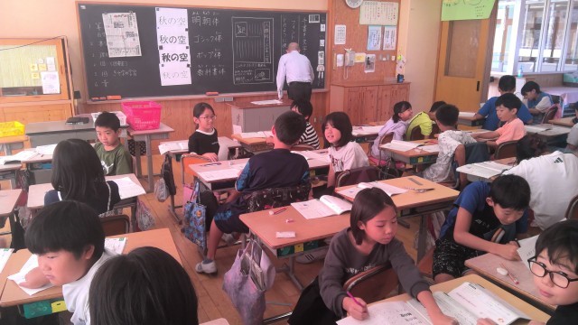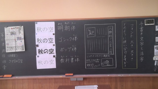 2時間目は国語の授業でした。「いろいろな字体で文字を書いてみよう」という課題のもと、明朝体やブロック体の違いを確認しながら丁寧に字を書いていました。