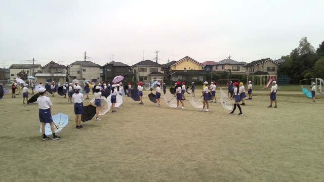 1時間目は保健体育科の時間でした。当日と同じように傘をもって表現運動を行いました。少しづつ完成に近づいているようです。