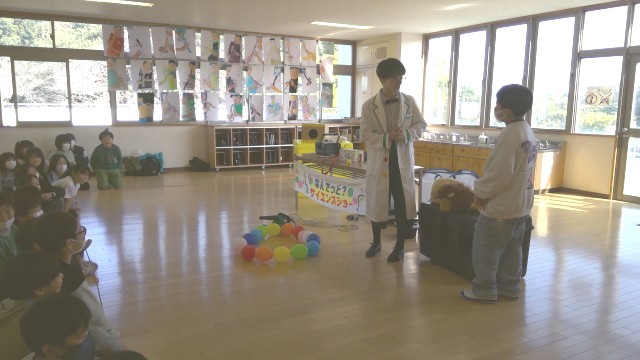 4年生はサイエンスショーでした。ユニークな語りと理科にかかわるマジックを合わせた催しでした。子どもたちは、ひとつひとつのマジックに不思議そうに見ていました。4年生のスマイルアシストの皆さん、お世話になりました。