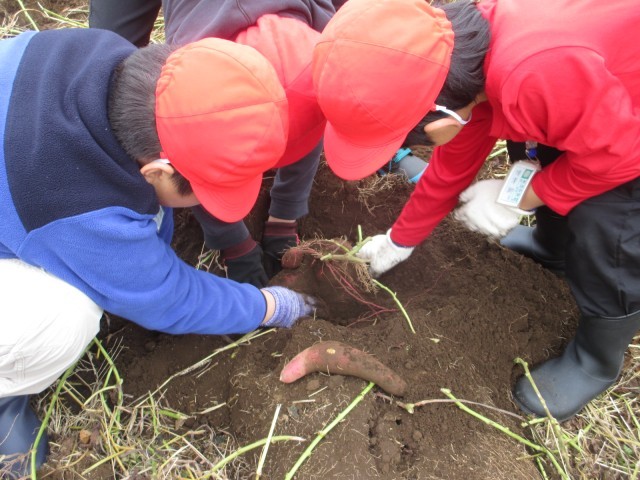 昨日、社会科の学習の一環でPTA会長さんのサツマイモ畑で、農業体験を行いました。会長さんからは農業についての話や、働く意義などについて話をしていただきました。また講話の後、子どもたちがさつまいも堀りを体験しました。袋いっぱいにさつまいもを持ち帰りました。また学校にも寄贈していただきました。本当にありがとうございました。子どもたちは素晴らしい経験ができたと思います。