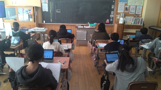 【5年生】2時間目の様子 公開日 2025/12/17 更新日 2025/12/17 5年生 1組は音楽の時間でした。「キリマンジャロ」という曲をリコーダーで演奏しました。2組は総合的な学習の時間でした。防災について各自でタブレットを使用してまとめていました。