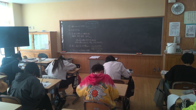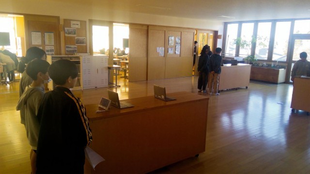 1組は算数の時間でした。確率に関するプリントに取り組んでいました。2組は国語の時間でした。各自がまとめたスライドを発表する練習をしていました。