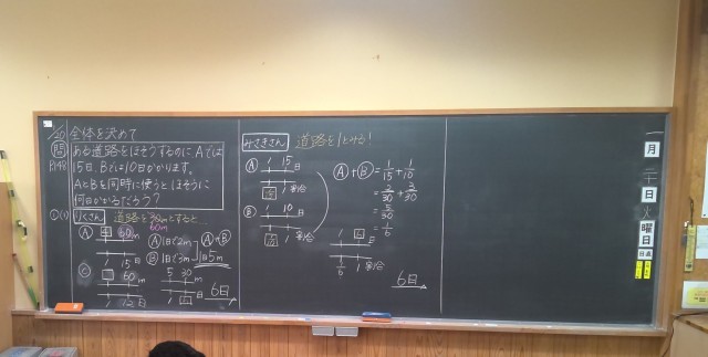 1組は国語の時間でした。学習内容が終わり各自読書をしていました。2組は算数の授業でした。2組は算数の時間でした。2通りの解決方法を示し、それぞれのよさについて考えることができました。