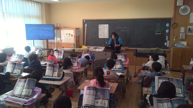 5時間目は音楽の授業でした。「きらきら星」の音楽にあわせて、踊りながらリズムをとっていました。