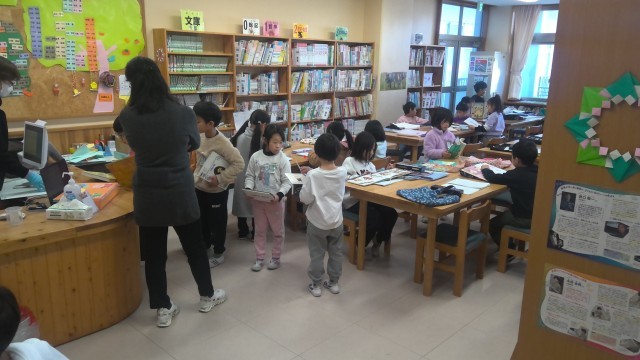 5時間目は図書室で読書の時間でした。各自が興味のある本を探して、熱心に本を読んでいました。