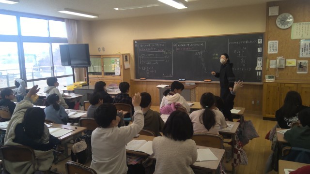 【4年生】2時間目の様子 公開日 2026/02/10 更新日 2026/02/10 4年生 2時間目は算数の時間でした。「割り算の筆算を続けていって、割り切れないときはどうするのか」という課題で、それぞれが自分の考えを黒板に書き説明しました。