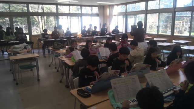 【4年生】1時間目の様子 公開日 2026/02/13 更新日 2026/02/13 4年生 1時間目は音楽の時間でした。リコーダーや鍵盤ハーモニカなどを使って合奏をしました。練習した成果が表れた合奏でした。