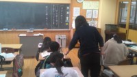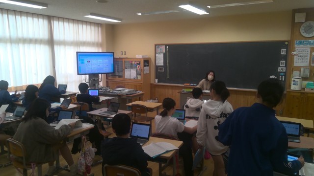 1組は保健体育の授業でした。サッカーをやりました。2組は防災についてのスライドを作成していました。