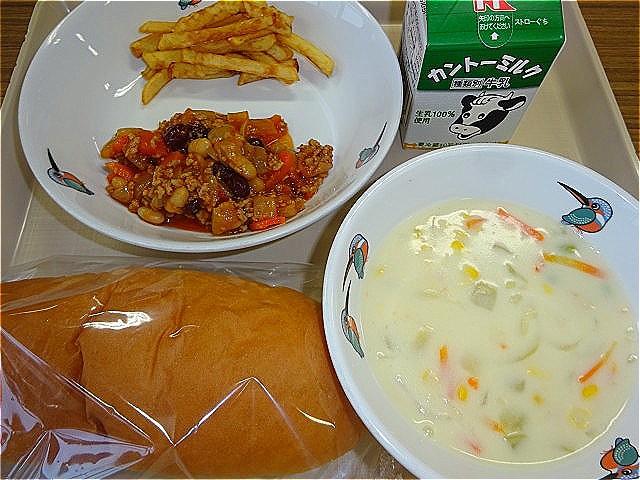 【2/25給食紹介】姉妹都市交流事業「アメリカ合衆国カリフォルニア州ユーバ市」 公開日 2026/02/25 更新日 2026/02/25 お知らせ 今日の給食は、「コッペパン、牛乳、チリコンカン、ポテトフライ、コーンチャウダー」です。