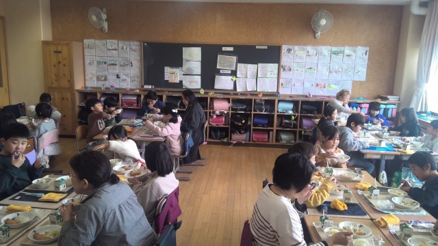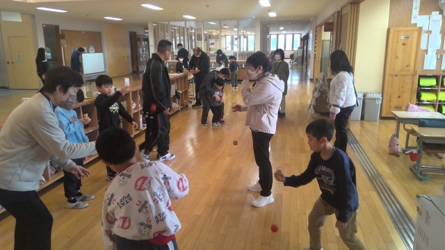 4時間目は生活科の一環で、地域包括支援センター「さらの杜」様と連携をして、昔遊びを体験しました。コマ回しやダルマ落とし、カルタなど5種類の昔遊びに挑戦しました。このあと給食を一緒に食べました。高齢者の方からは「とても楽しかったです。元気をいただきました」などのお声をいただきました。これからも地域と連携をして「地域とともにある学校づくり」を進めてまいります。