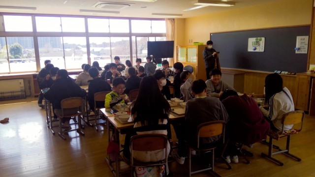 【6年生】卒業式前日の給食 公開日 2026/03/16 更新日 2026/03/16 6年生 小学校生活最後の給食でした。子どもたちが好きな唐揚げがありました。スープには「祝」と記された練り物が入っていました。とても楽しそうに会食していました。