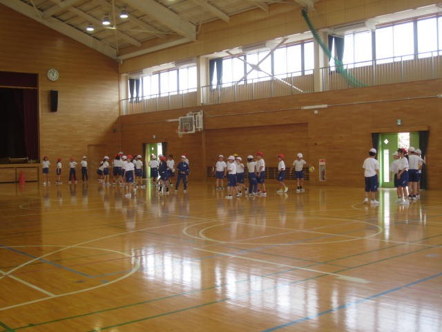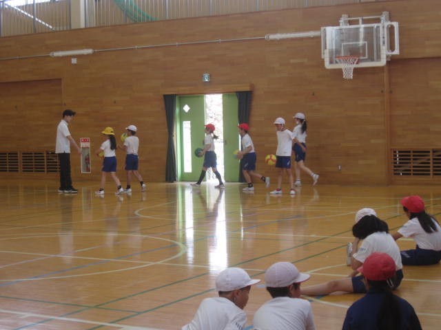4年生の体育は、体育館で体力づくり。ボールを使ったさまざまな体力づくりをしていました。担任の先生が話をするときには、サッとあつまったり、顔をしっかり向けたりと「話を聴く」ができていてすばらしいです。