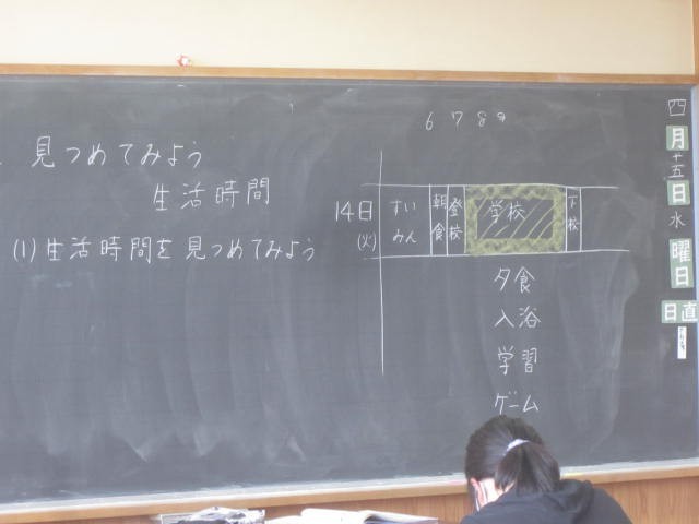 先週1週間の生活時間を色分けしてみると・・・どんな時間を永山小の6年生は過ごしているのかな?学校から帰ると・・・すぐにゲームだったり、遊びにいったり・・・習い事をしたり、家族とすごしたり、いろいろな様子を見ることができました。