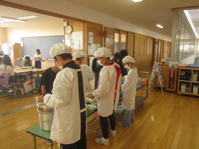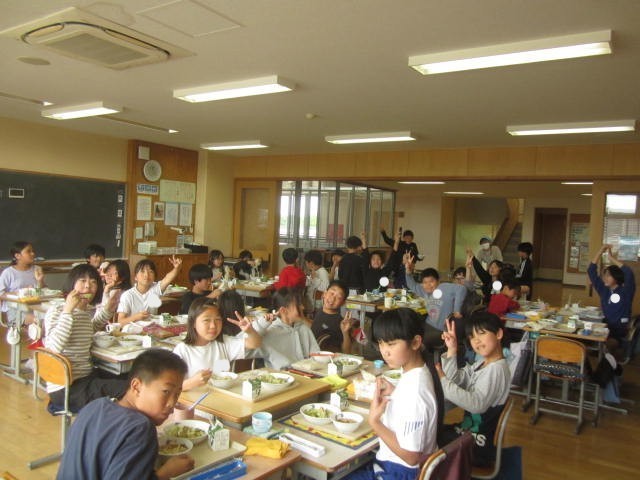 今日の給食は、山菜うどん(季節の食べ物ですね)、甘酢あえ、ちくわの磯部揚げです。ちくわの磯部揚げってなんでこんなにおいしいんでしょうね。5年生はとっても静かに用意をしていました。すごいなぁ!準備中におしゃべりをする人はほとんどいません。となりの学年の声が聞こえるくらい静かです。お手本ですね!!