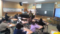 5年1組は国語の時間でした。説明文の要旨を捉える内容でした。2組は図工の時間でした。画用紙や厚紙を切って、ビー玉で遊ぶ作品作りに励んでいました。