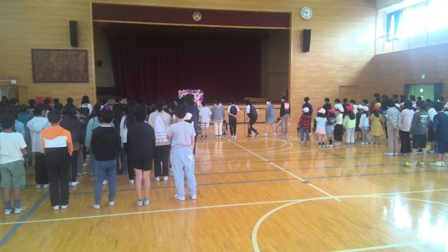 2時間目に1年生を迎える会を開催しました。2年生の代表児童からは「あさがおの種」が贈呈されました。また全校児童で校歌をうたったり、じゃんけん大会などをしたりして楽しい時間を過ごしました。