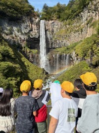 華厳の滝を見学しました。昨日とは違い、秋晴れの中見学ができています。子どもたちは...