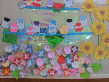 図書室前の掲示物です。読み聞かせボランティア『フォレスト』の皆様が、いつもきれいな掲示物を作ってくださっています。夏バージョン。夢いっぱいの掲示物。本当にありがたいです。