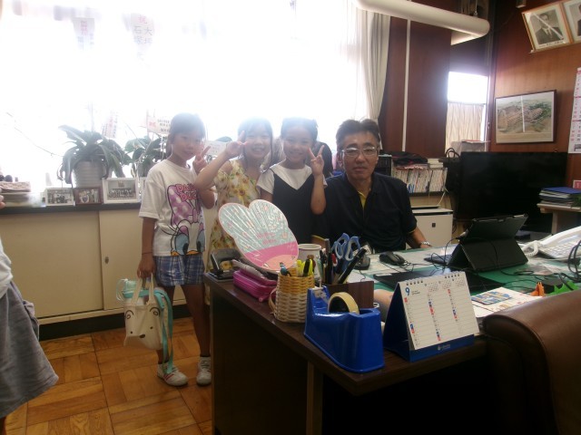今日の休み時間の様子です。写真は少人数ですが、この向こう側に多くの子供たちが・・・。校長室が子供たちでいっぱいです。