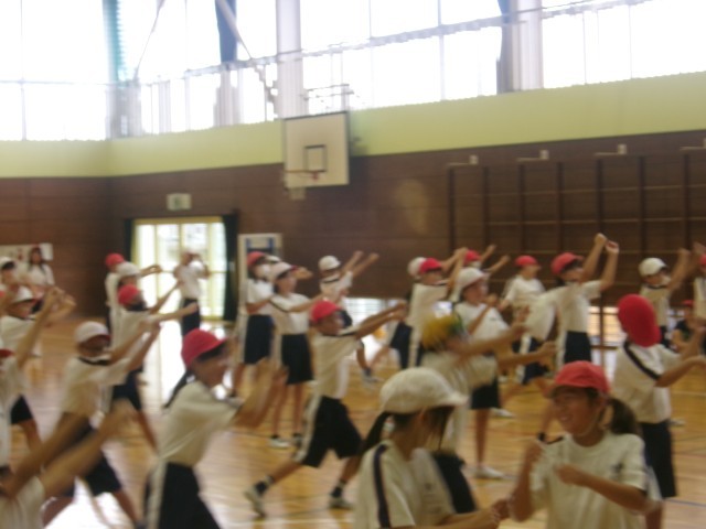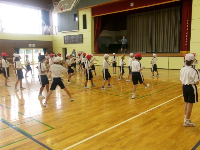 5年生の体育の時間の様子です。今日は、宿泊学習の時に踊るフォームダンスの練習をしていました。