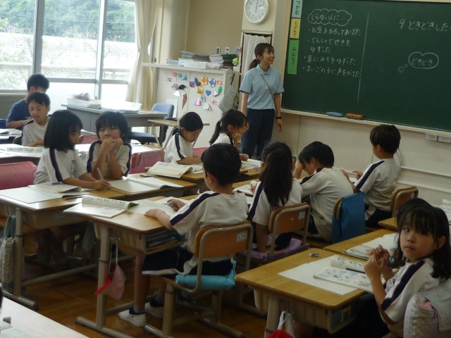 2年生の授業の様子です。明るく元気な2年生。教室の中が、とても明るい雰囲気です。