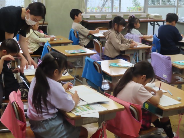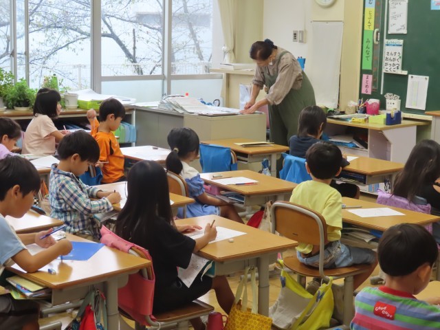 1年生の授業の様子です。外は雨模様☔ですが、教室の中はとっても爽やかです。