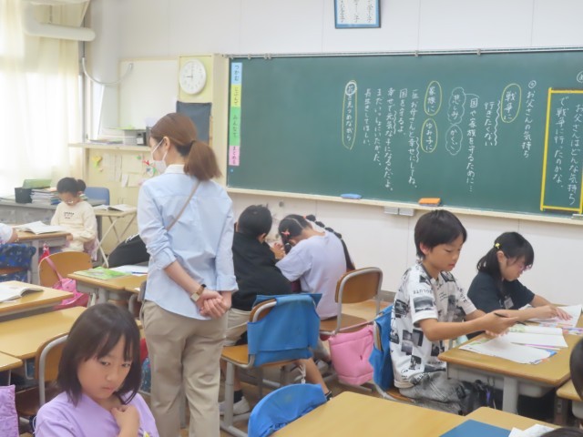 4年生の授業の様子です。温かい雰囲気で、落ち着いて学習に取り組むことができています。