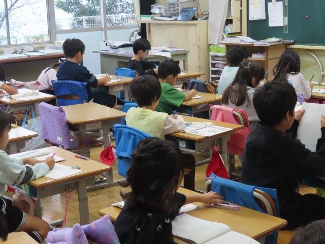 1年生の授業の様子です。いつも明るく元気な1年生。授業中は、集中して学習に取り組むことができています。