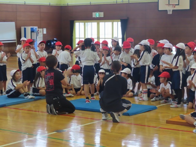 体育の授業では、現在、『マット運動』に挑戦しています。友達と助け合いながら、楽しそうに活動しています。