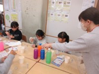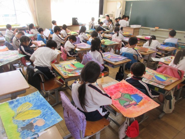時間をかけて取り組んできた「できたらいいな、こんなこと」の絵が完成しました。虫と一緒にやってみたいことを表すために、最後に自分を描いて完成です。たくさんの時間をかけて仕上げた分、完成の喜びもひとしおのようでした。
