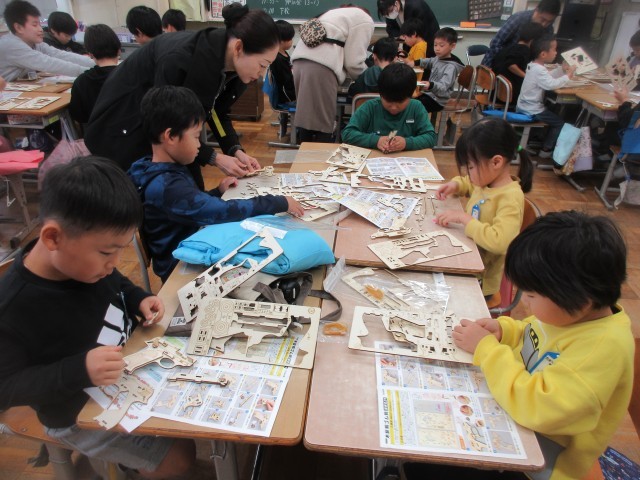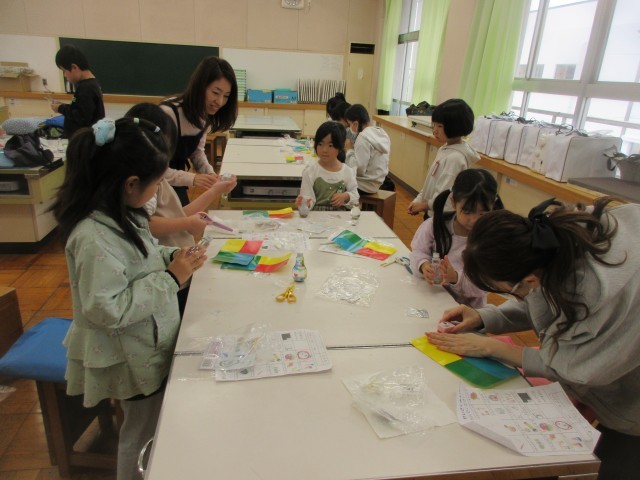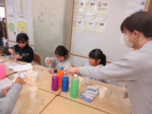 ギャラクシーボトルやスノードーム、輪ゴムピストルなど、ものづくりの制作の種類もたくさんありました。ボランティアのおうちの方に教えてもらい、完成した作品を手に、子供たちは笑顔いっぱいになっていました。ありがとうございました。