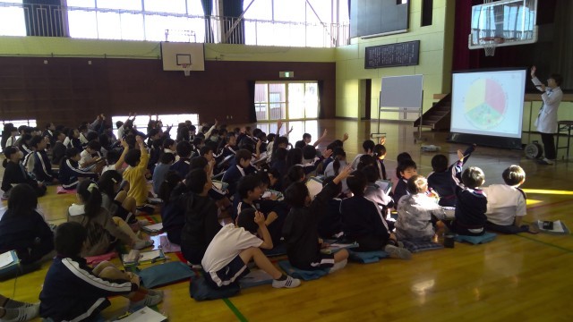 1時間目にカスミの方から食育のお話を聞き、食品ロスやリサイクルなどについて考えることができました。