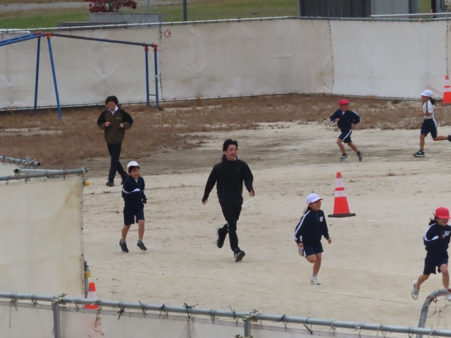3年生の授業の様子です。寒い中、持久走の大会に向けての練習を行っています。