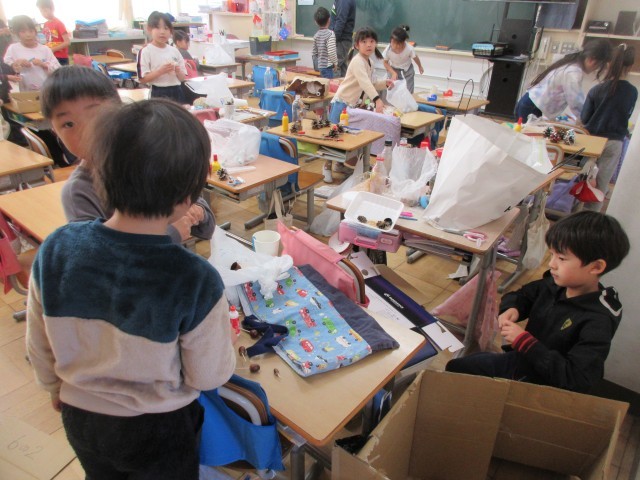 11/14 1年生 秋のおもちゃ作り、頑張っています