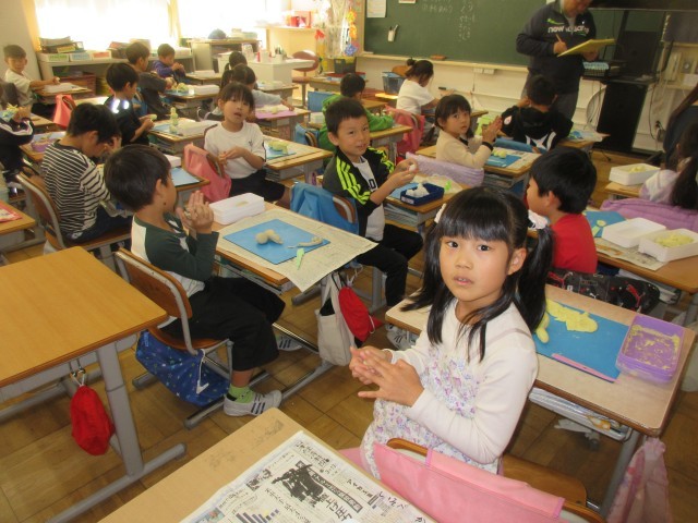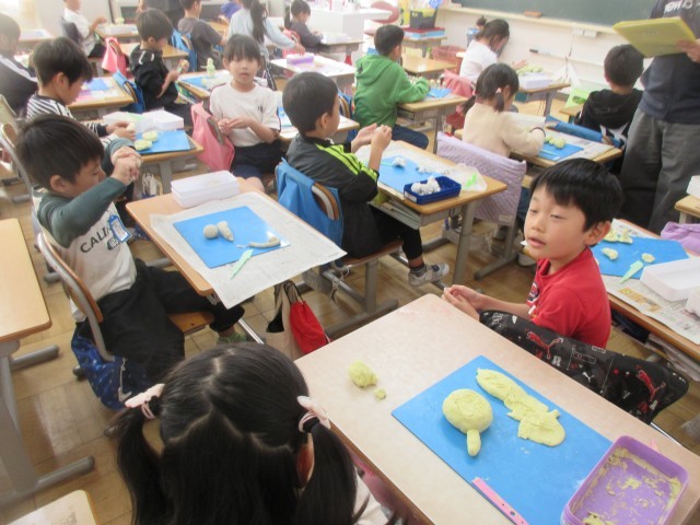 図工では、粘土で作品作りに取り組みました。お題は、「おいしい秋見つけた!」です。「秋のケーキを作ろうかな。」「どんぐりを食べているリスを作りたいな。」…お題からイメージを広げて、楽しそうに作っていました。